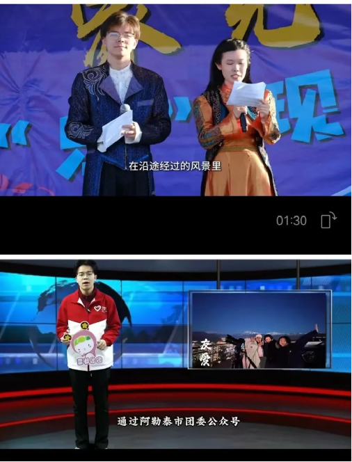 张明服务的地区是共青团阿勒泰市委员会,他主要负责的是宣传工作,作为一名播音生如何干好宣传?他每天都在琢磨这个问题,经过深思熟虑,他打算通过短视频让更多人见证阿勒泰的非凡魅力!但是视频怎么拍?脚本怎样写?技术上的难题怎么解决?面对困难,张明和其他志愿者们说,“咱们年轻,怕啥,有山就爬,有河就游,不会,我们就学。”