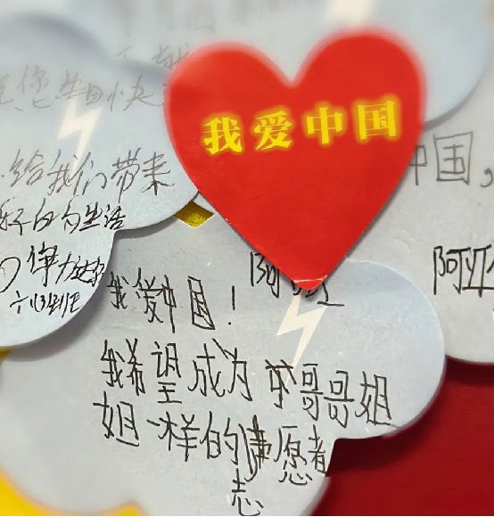 最让张明意想不到的是,在课后一名学生在纸条上,上面歪歪扭扭却饱含深情地写着:“我想成为哥哥姐姐一样的志愿者。”