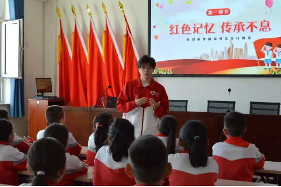 张明除了日常的宣传工作之外,还经常到学校进行志愿服务,他这位“临时老师”主要负责的是爱国主义教育,他用自己的亲身经历,为学生们描绘科技飞速发展的中国,讲述了西安的底蕴与魅力。他的故事让学生们看到繁荣昌盛的祖国,也了解不一样的世界,感受到了责任与担当的重量,点燃学生们心中的爱国之火。