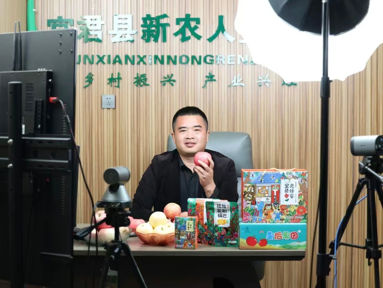 作为皇后村的“明星新农人”,谭战已成为宜君县乡村振兴的代表人物。2025年暑假,西安培华学院宜君县乡村振兴课题组两度探访他的直播间,深入调研电商在乡村发展中的应用。