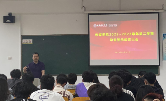 传媒学院的2022-2023第二学期成立了学业预警专项小组,以帮助学生解决学业问题,根据不同预警等级,副院长、生活生涯导师、学业导师、专业负责人需与每位被预警学生进行了一对一谈话,生活生涯导师积极和学生家长联系并邮寄西安培华学院学生学业预警通知单,真正做到了学院、学生、家庭“三结合”。希望通过此次学业警示教育大会,能够引起学生对于学业的重视,激发学生的学习动力,使学生能重拾学习信心,正确对待学习,逐渐改善学习习惯,争取通过自己的努力,顺利完成学业。