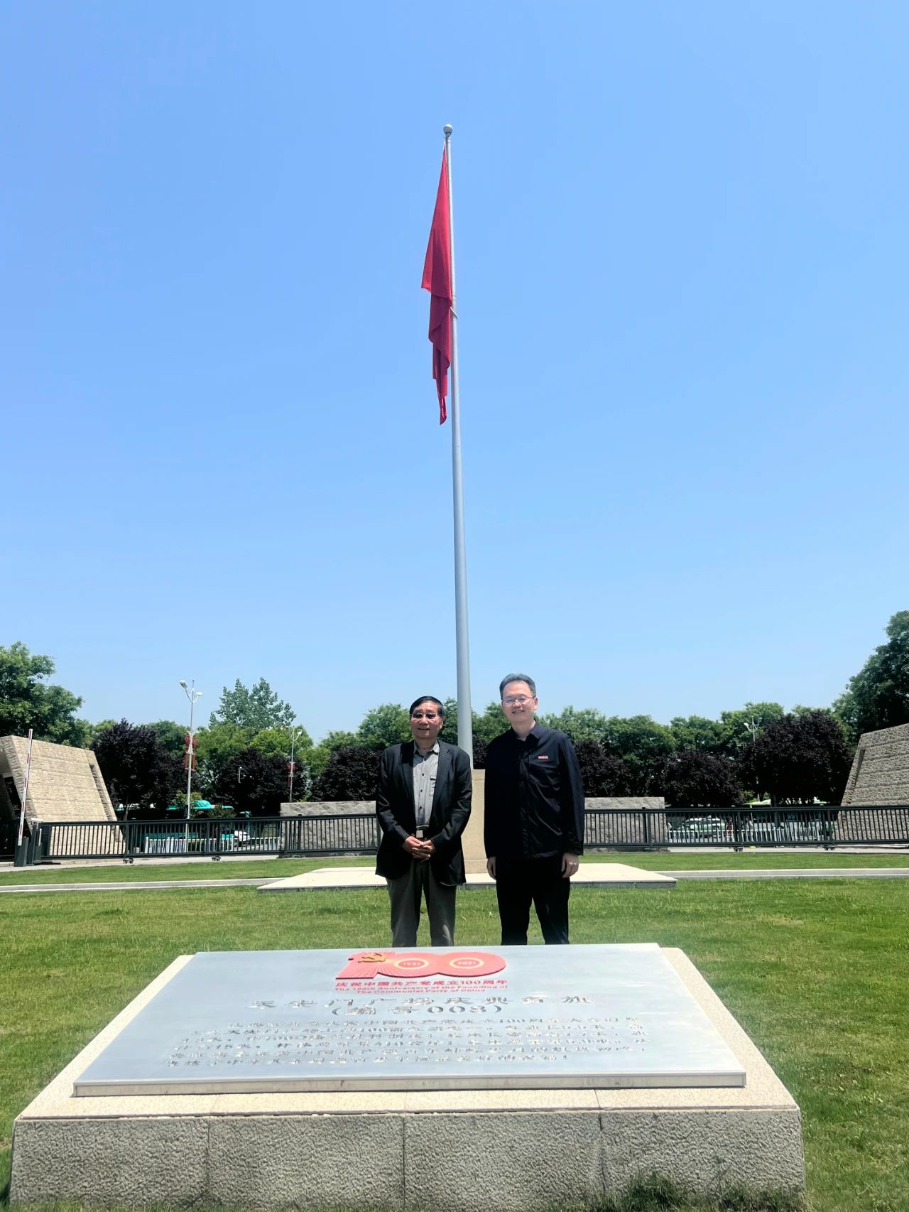 会后,西安培华学院理事长姜波带领参会嘉宾和部分学会负责人参观了树立在学校东门的“庆祝中国共产党成立100周年天安门广场庆典红旗”并集体合影留念。