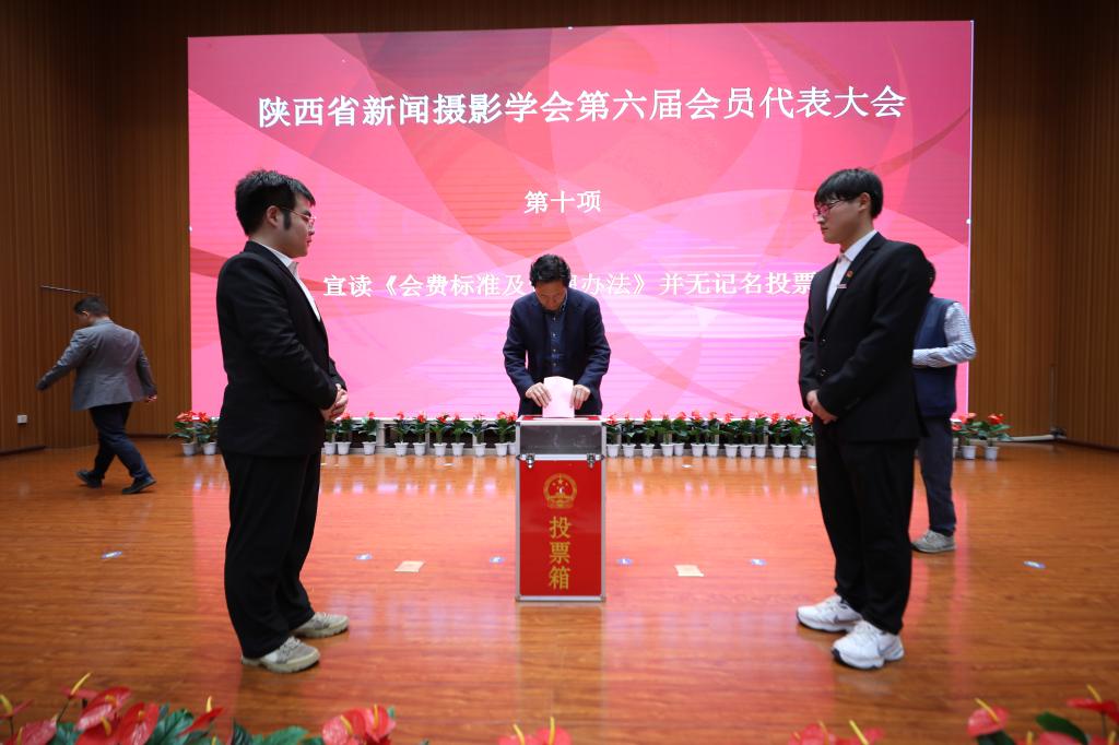 大会对《陕西省新闻摄影学会第五届理事会工作报告》《陕西省新闻摄影学会第六届会员代表大会选举办法》《财务审计报告》《陕西省新闻摄影学会学会章程》《陕西省新闻摄影学会会费标准及管理办法》等文件进行审议、表决和无记名投票。