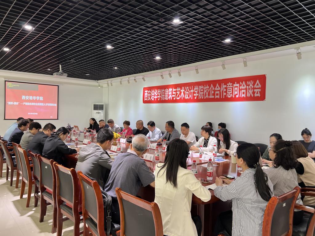 为贯彻落实全国教育大会和《国务院关于深化产教融合的若干意见》 精神,落实《国家教育事业发展“十三五”规划》、《教育部国家发展改 革委财政部关于引导部分地方普通本科高校向应用型转变的指导意见》,推进产教融合机制创新,加强高水平示范性应用型大学内涵建设,构建科学的人才培养体系,推动地方本科高校转型发展出经验、见实效,切实培养大批高素质应用型人才,西安培华学建筑与艺术设计学院于2023年4月20日14:00召开跨界-融合产教融合应用型人才培养专项研讨会暨校企合作意向洽谈会,学院常务副院长徐莹、党委书记王飞、教学副院长王虎、院长助理刘清颖、党委副书记南斌红及各专业系副主任、专业带头人参会。