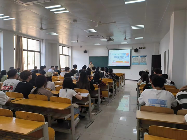 辅导员王璐在班会中强调要坚持总体国家安全观,坚持发展和安全并重,切实把思想和行动统一到党中央的总体部署上来,全体同学同频共振、步调一致。每个人都要讲好维护国家安全的故事,汇聚起维护国家安全人人有责、人人尽责、人人共享的强大合力。