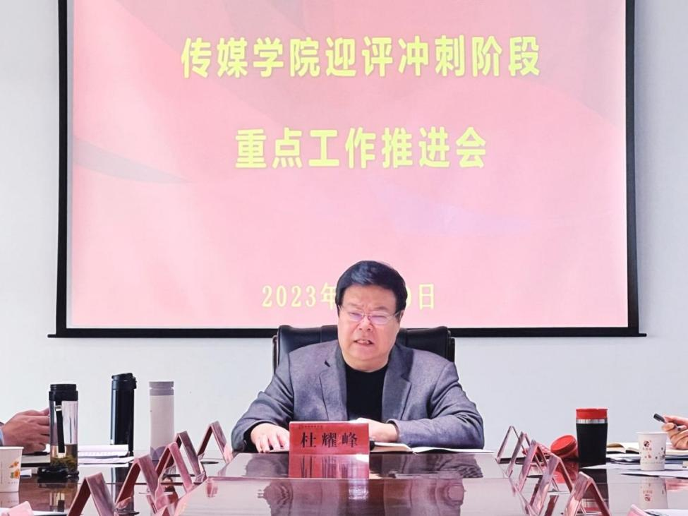 为进一步做好迎评冲刺阶段各项工作安排,3月10日,传媒学院召开迎评冲刺阶段重点工作推进会议,传媒学院院长杜耀峰教授对学院迎评冲刺阶段重点工作进行全面部署,传媒学院领导班子、各专业带头人、系(副)主任及全体教学管理人员参加此次会议。会议由传媒学院常务副院长王西娅教授主持。