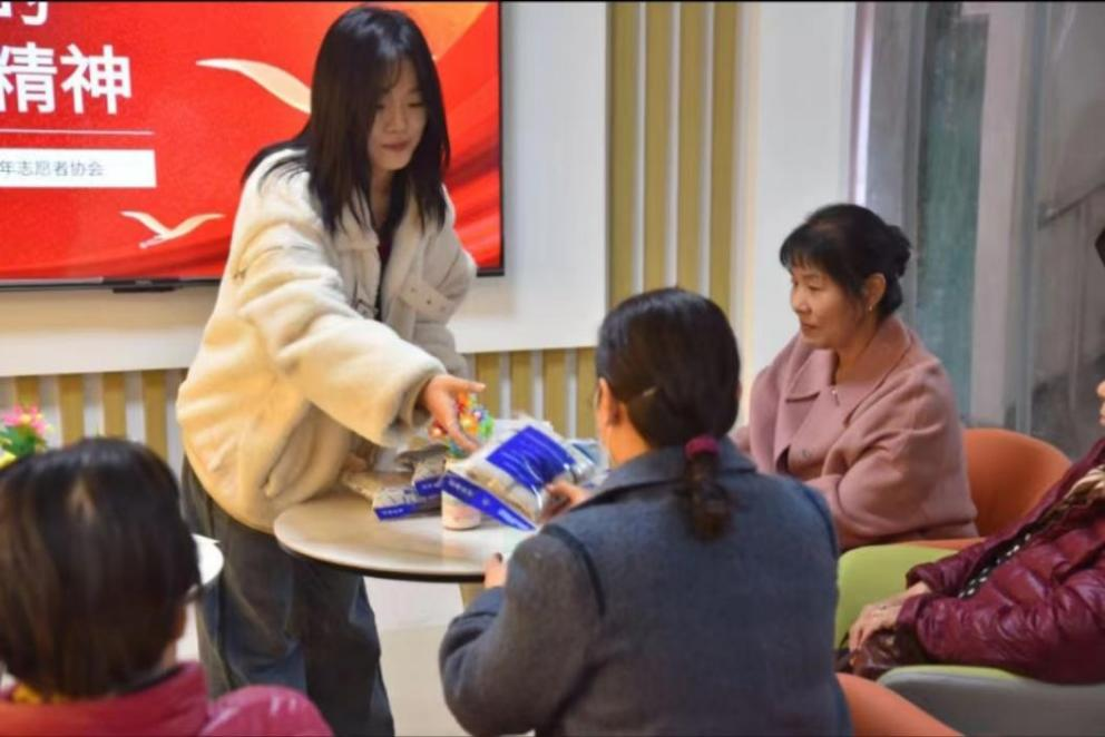 其次,在“挑战杯”知识竞赛中,由活动部成员苏琦斐主持竞赛提问,社区老人积极参与抢答,现场气氛积极活跃,欢声笑语不断。在竞赛结束后,志愿者们细心为参与竞答的活动人员分发毛巾、香皂等竞赛奖品。
