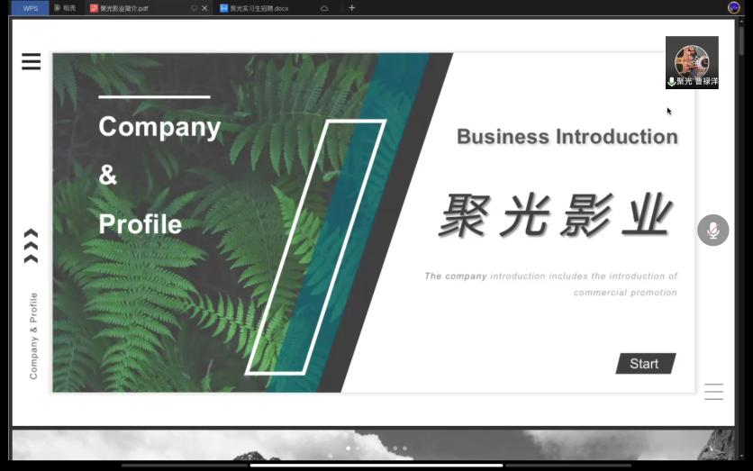 聚光影业是一家集信息流广告、宣传片、专题片以及微电影拍摄为主的传媒类公司,招聘会上聚光影业的负责人曹禄洋以PPT宣讲的形式展现了公司的发展历程、产品服务、运营策略、培养方式以及福利待遇等信息。