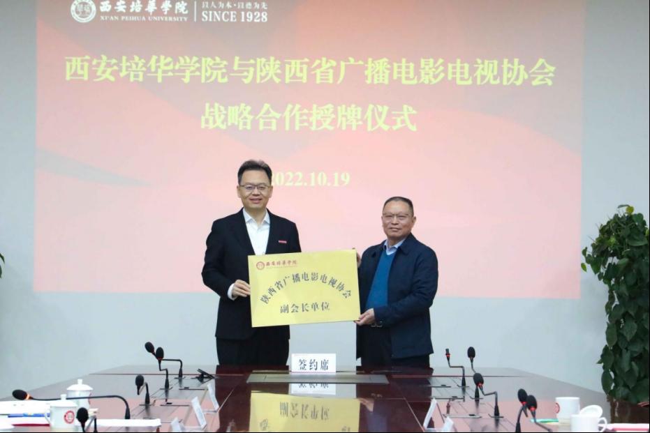 为进一步增进产教融合,10月19日上午10点,在西安培华学院明德楼第一会议室举行了西安培华学院与陕西省广播电影电视协会战略合作签约暨揭牌仪式。