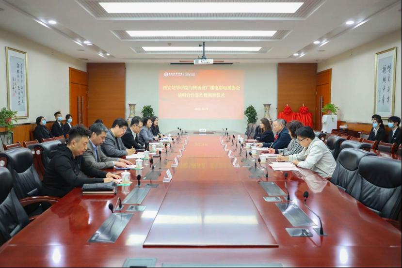 陕西省广播电影电视协会会长童宏钧,秘书长陈洁,办公室主任王东红,培训中心主任、办公室副主任王瑞兵,培训中心副主任周杰,西安培华学院理事长姜波,校长助理秦海锋,传媒学院院长杜耀峰,传媒学院党委书记、行政副院长江俊瑞,副院长张荣花,产学研副院长陈小奕参加签约仪式,传媒学院常务副院长王西娅主持会议。