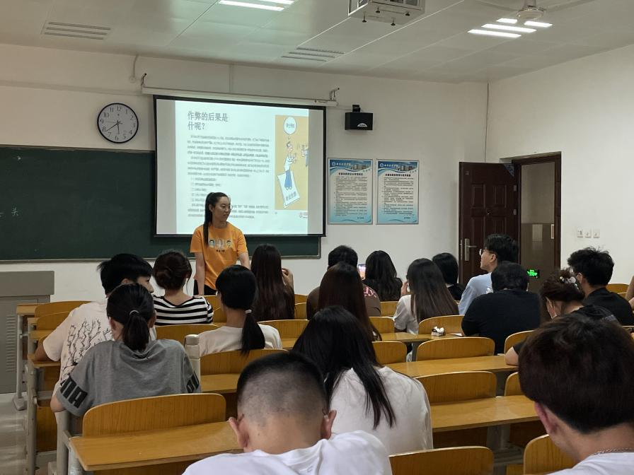 各班级通过主题班会、诚信签字、组织学生学习《学生手册》有关诚信考试的相关规定等形式,引导学生自我教育、自我管理、自我服务。辅导员老师到班级开展诚信教育活动,使同学们更加了解了“诚信”的含义,懂得了“诚信”的重要性。班会上,辅导员向学生们解释了考试作弊的危害。欺诈氛围的形成导致学生厌恶不正当竞争,损害学生的学习动机,阻碍良好学习风气的形成。教师通过讲述真实案例引导学生进行诚实的考试。各种作弊案例的例子让学生清楚什么是欺诈作弊。此外,用现实的例子告诉学生诚实诚信的学习、在职业和交流中有多么重要。学生们从他们所听到的话语和案例中受益匪浅。