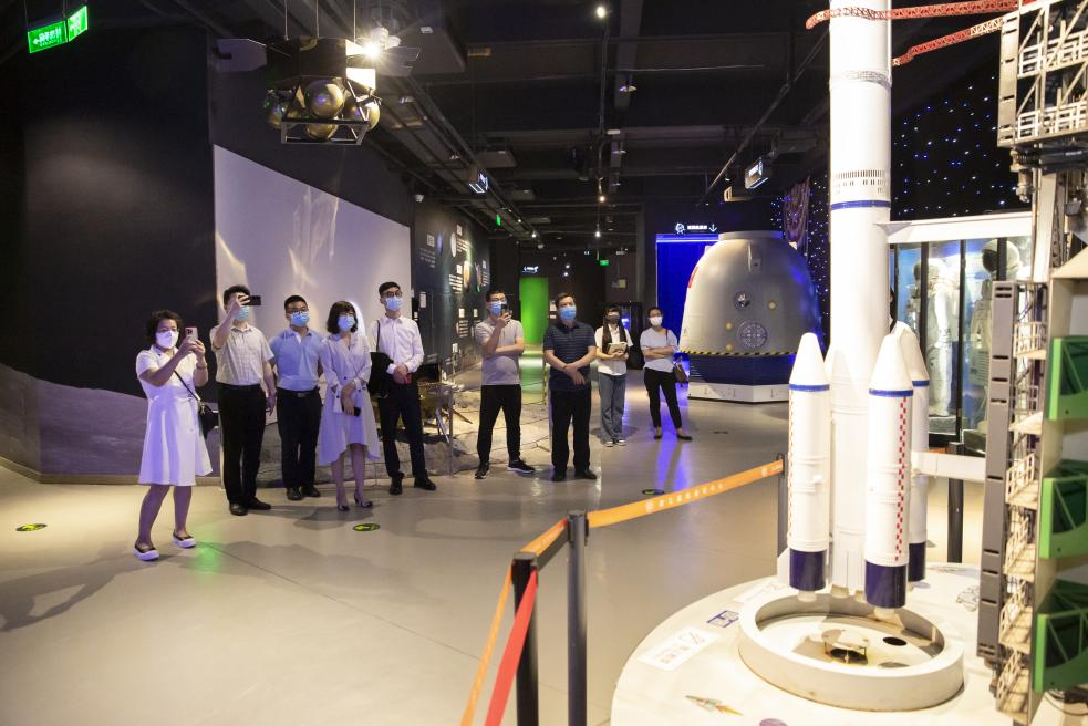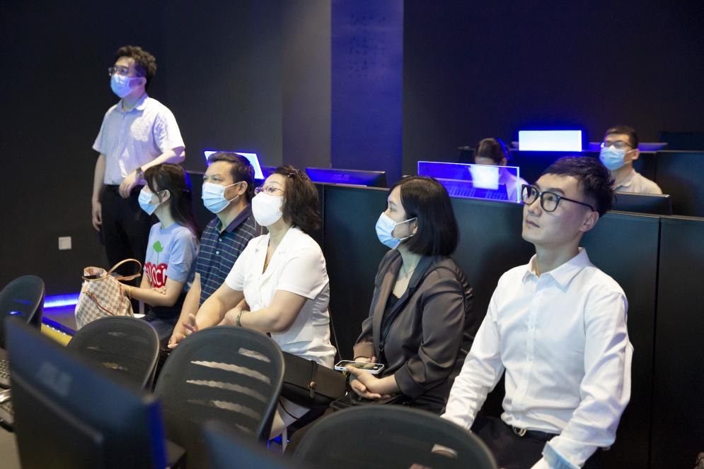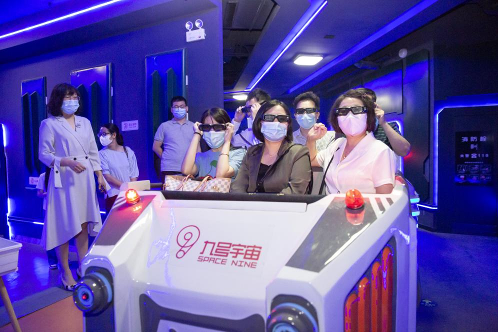 九号宇宙是国内首家沉浸式天文教育体验馆、全国首家互动式深空科普研学基地。四层场馆集沉浸游览、娱乐互动、科学实践教育为一体,突出文化+科技+教育的跨界融合,为大学生社会实践提供新兴场所。陕西中科大西科普文化发展有限公司总经理,九号宇宙馆长蒋焱向我校领导老师介绍了主营业务及运营模式,并现场带领我院领导老师“沉浸式”体验场馆。