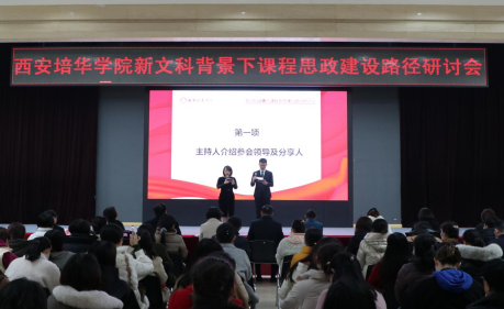 为推动我校课程建设,进一步打破学科、专业壁垒,推动专业之间交叉的深度融通,赋能新文科教育理念,实现新文科教育自我革新,由中共西安培华学院委员会指导,教师发展中心主办,传媒学院、人文与国际教育学院、建筑与艺术设计学院联合承办的“西安培华学院新文科背景下课程思政建设路径研讨会”于12月15日下午在汇知楼阳光厅举行,西安培华学院常务副校长胡俊生、西安培华学院副校长兼人文与国际教育学院院长刘越莲、西安培华学院党委副书记兼副校长姚文静、传媒学院院长杜耀峰、传媒学院常务副院长王西娅、人文与国际教育学院常务副院长梁蕊、建筑与艺术设计学院常务副院长徐莹、传媒学院副院长张荣花、建筑与艺术设计学院院长助理刘清颖、传媒学院院长助理张琨及传媒学院、人文与国际教育学院、建筑与艺术设计学院的教师代表参加了研讨会,研讨会由传媒学院播音与主持艺术专业教师余文、学生宋泽华主持。