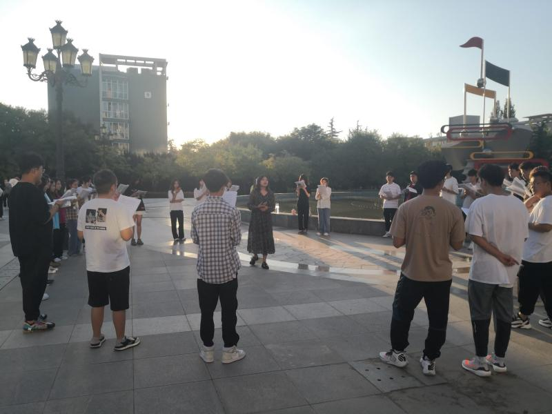 (五班同学外练声中提高自身专业能力)