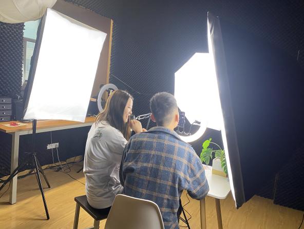 为了同学们能够在课程中模拟真实的直播环境,在课程开课前,学院便为本课程配备了先进的直播设备,增强了学生的学习体验感和直播代入感,让学生能够更好的进入直播状态。在《全媒体营销》的课堂,同学们都很认真地聆听授课教师与企业负责人解析的每一款产品,并学会如何控场、排品等。同学们通过学习直播操作培训后,尝试每组两位主播上线进行直播,不仅让学生大胆发挥直播中的个人风格,也让他们为带货“嗨”起来,给观众带来了不一样的感觉!
