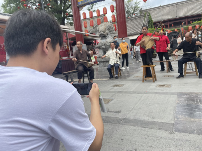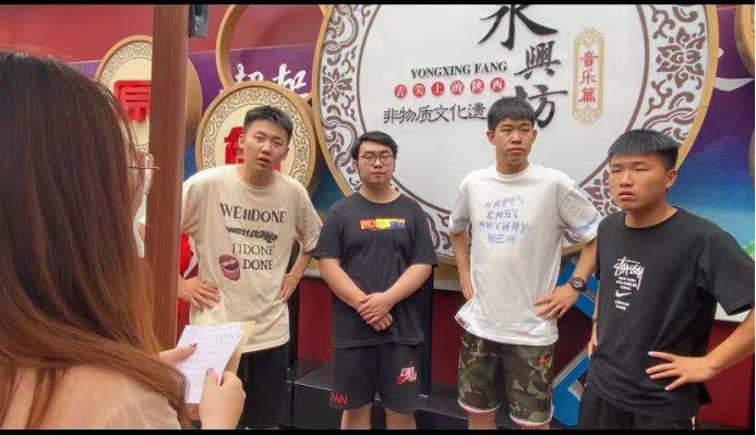 本次活动要求同学们以小组为单位,进行考核及任务拍摄。同学们在观看创意性民俗文化中提到:非物质文化遗产是一个民族在历史发展过程中逐渐形成、不断演进的独特民俗风貌和观念形态,其中的共同精神、行为准则和价值取向是形成群体认同的重要支撑。但是,随着时代发展,许多名俗文化诞生和存续的社会环境发生变化,要让名俗文化“活起来”,就必须让其融入现代社会生活,名俗文化的创造性转化和创新性发展尤为紧迫。永兴坊的就是实现了名俗文化的创造性转化、创新性发展,使之与现实文化相融相通,非物质文化遗产以节目的形式在景区中展示也正是一种创造性转化、创新性发展。