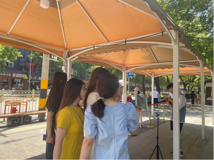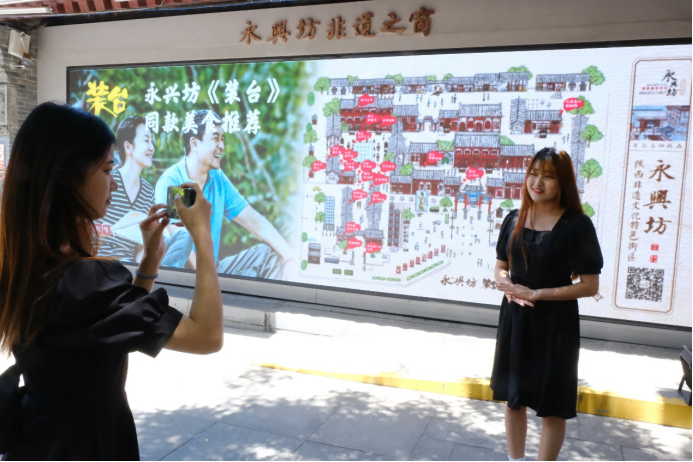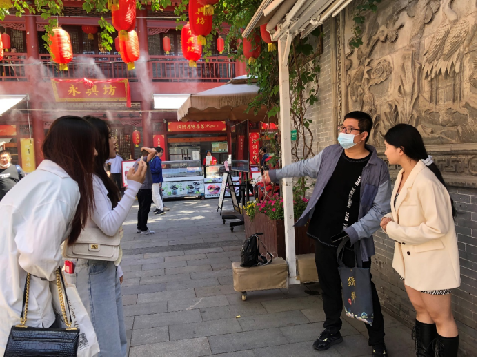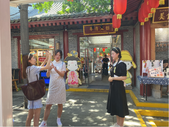 在实践过程中,同学们除了对永兴坊的历史进行了讲解还观看了永兴坊实践培华专场免费项目:皮影、提线木偶、老腔、摔碗酒等创意性相关民俗文化。还根据提前策划好的实践方案,对景区工作人员、附近居民以及来永兴坊旅游的游客进行了采访。在深入了解永兴坊非物质文化遗产的同时,感受到了西安文化的深厚底蕴。