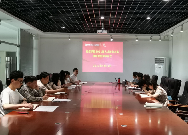 为了深入领会《西安培华学院关于修(制)订本科专业人才培养方案(2021版)的指导意见》培华院教发〔2021〕23号文件精神,进一步完善应用型本科人才培养体系,传媒学院于5月31日下午召开了2021版人才培养方案文件解读会议。传媒学院常务副院长王西娅、副院长赵伟、院长助理张荣花、各专业带头人及各系副主任参加了此次会议。