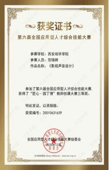 三等奖荣获者范瑞婵老师作品:《影视声音设计》