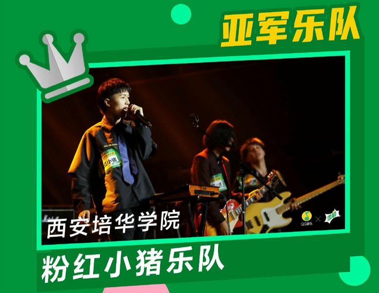 在刚刚结束的2020 Young Music校园乐队大赛中,来自西安培华学院的粉红小猪乐队主唱王博(播音与主持艺术1801班),节奏吉他手朱奕龙(戏剧影视文学1802班),贝斯手刘翰月(播音1904班),鼓手王佳乐(计算机1801班),主音吉他手杨宁杰(金融工程1801班)组成在700多支乐队中脱颖而出,荣获亚军。