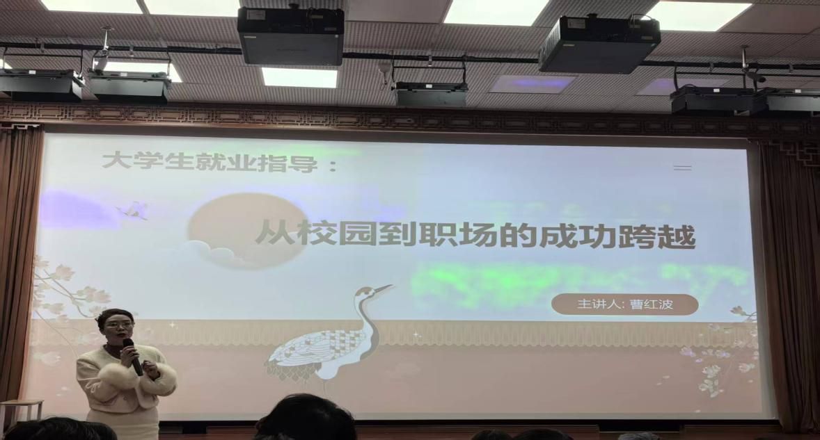 12月3日,“从校园到职场的成功跨越”大学生就业指导专题讲座举办,特邀西安永兴坊文化发展有限公司人事总监曹红波老师担任主讲人。曹红波老师以“从‘就业’到‘生涯赋能’”为开篇,打破传统就业指导仅聚焦“找到工作”的单一视角,强调就业规划应关注学生的个性特质、兴趣偏好、价值观念及长远发展,避免盲目择业,核心是为学生的职业生涯赋能。随后,她围绕“系统化就业指导体系的构建方向”,结合当前高校就业指导工作现状,从体系化、专业化、个性化等维度阐述如何搭建适配学生发展的就业指导体系,分析企业对毕业生的能力要求与选聘标准,针对就业过程中易出现的问题开展“差距分析。最后,曹红波老师为学生梳理分阶段的就业准备路径。