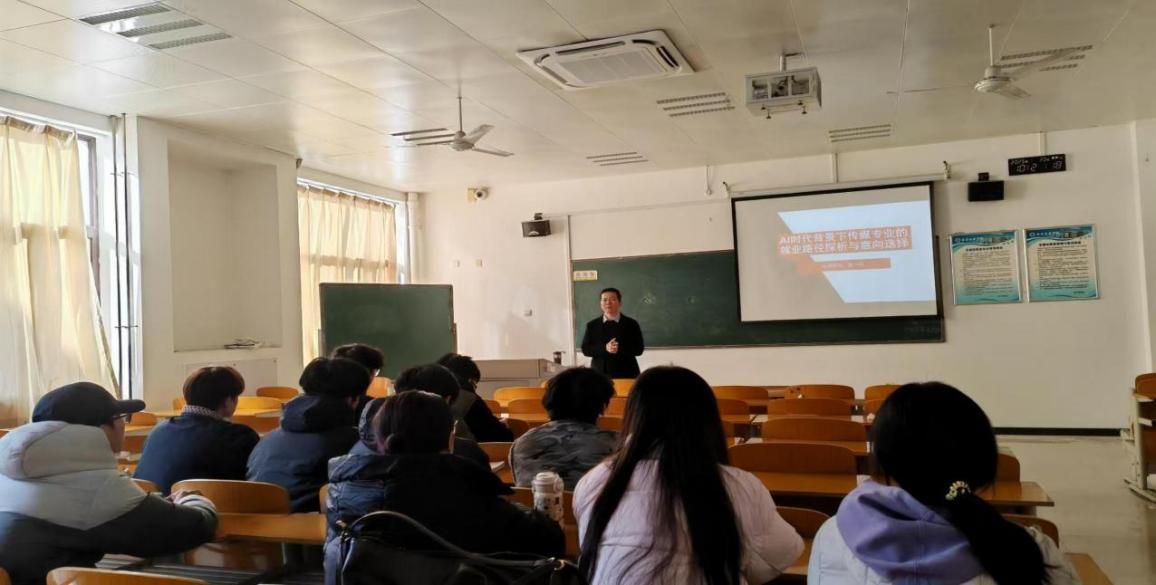 11月20日,学院广编专任教师雷一鸣在6413教室主讲“AI时代背景下传媒专业的就业路径探析与意向选择”讲座,24级戏剧影视文学专业学生参与学习。讲座内容体系完整,从七大维度展开深度解析:聚焦AI对影视传媒行业的影响,探讨其在影视制作、创意脚本开发中的应用及行业面临的挑战与机遇;结合近5年高校毕业生、考公、考研数据,分析AI背景下传媒专业的就业现状;梳理新闻媒体、影视公司、企事业单位宣传部门、新媒体平台等具体就业方向,同时涵盖考研、留学与自主创业等多元发展路径。