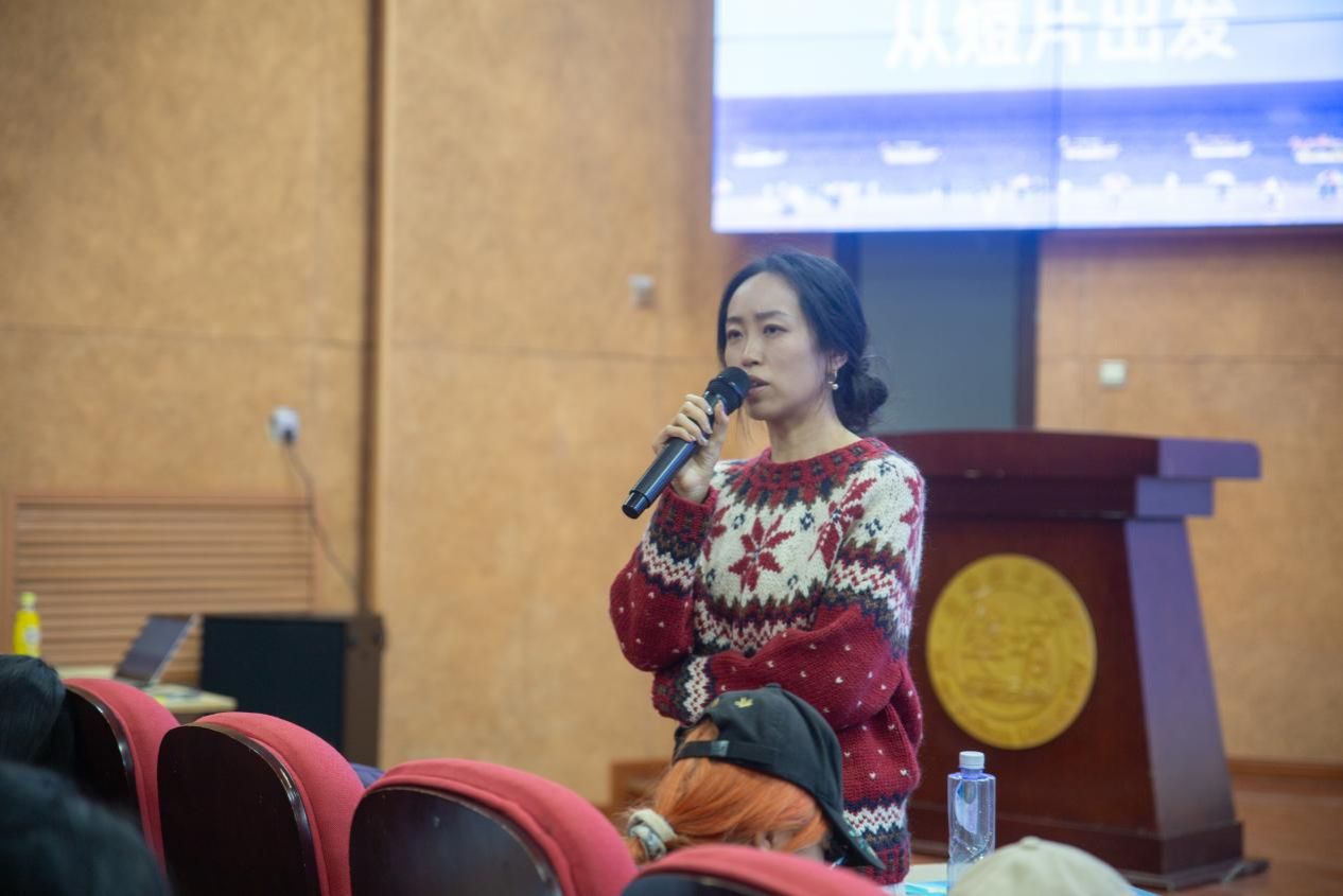 贾红分老师从剧作角度分享了主竞赛单元影片的剧本创作,重点从女性视角分享了影片《小萍的女儿》,同时也建议各位同学在短片创作的过程中能多思考小而美的故事。