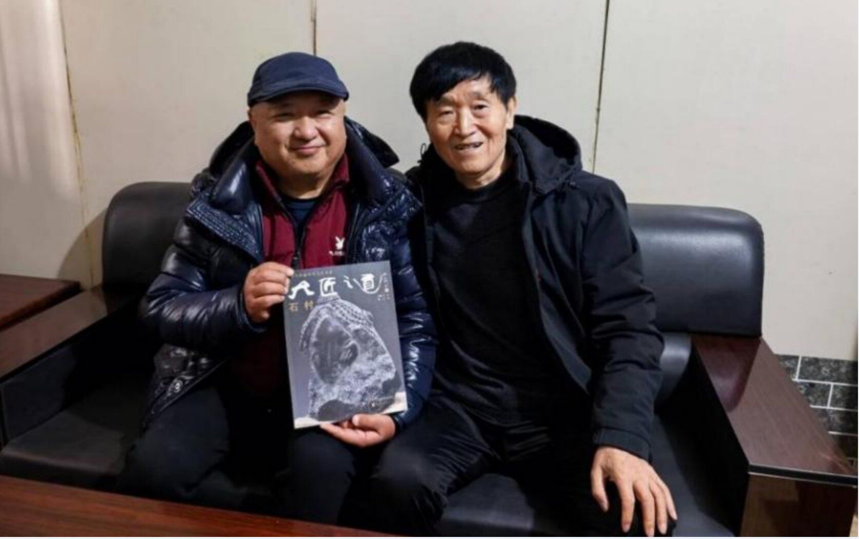 图三 石村教授向王又凯先生赠送个人作品集