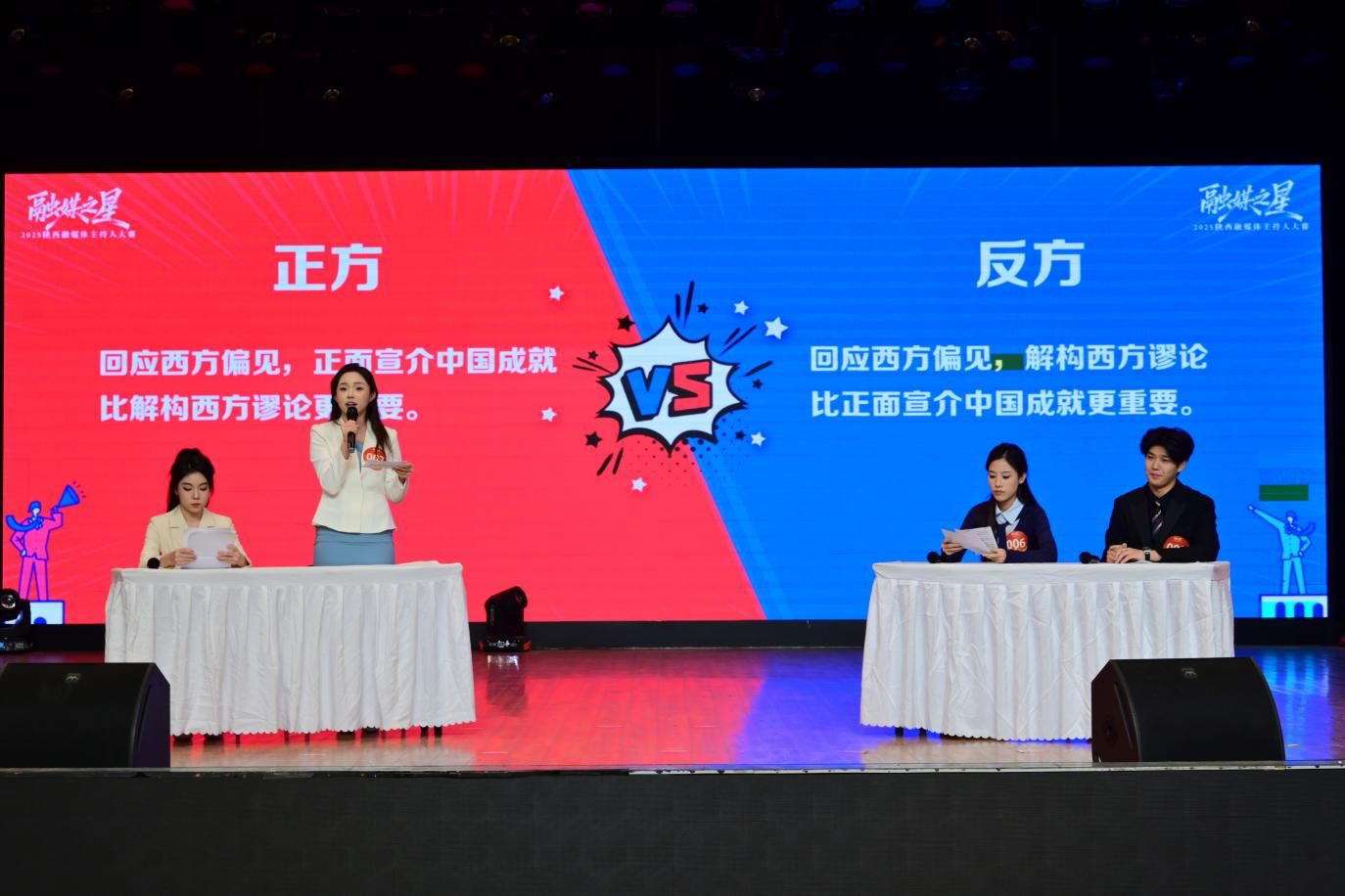 第二轮“全球视野 —— 主播辩论会”在大学生活动中心拉开帷幕,比赛以“让世界更好地认识中国”为核心辩题,采用团体赛形式展开。每组4名选手组成参赛队伍,以 2vs2 正反双方对抗模式,通过个人陈词、自由辩论、总结结语三个环节展开激烈交锋,每组总时长不超过 6 分钟。