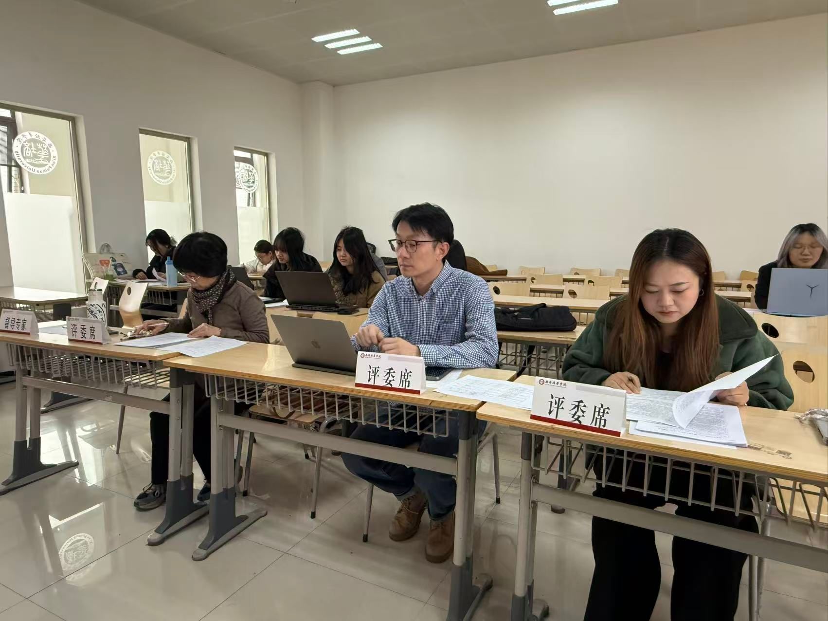 第二组由田秀秀老师担任组长,陈玲琼、刘慧楠老师担任成员,安家旗老师担任秘书;答辩学生11名,其中4名学生因为外地实习等不可抗力因素申请线上答辩,通过腾讯会议进行。
