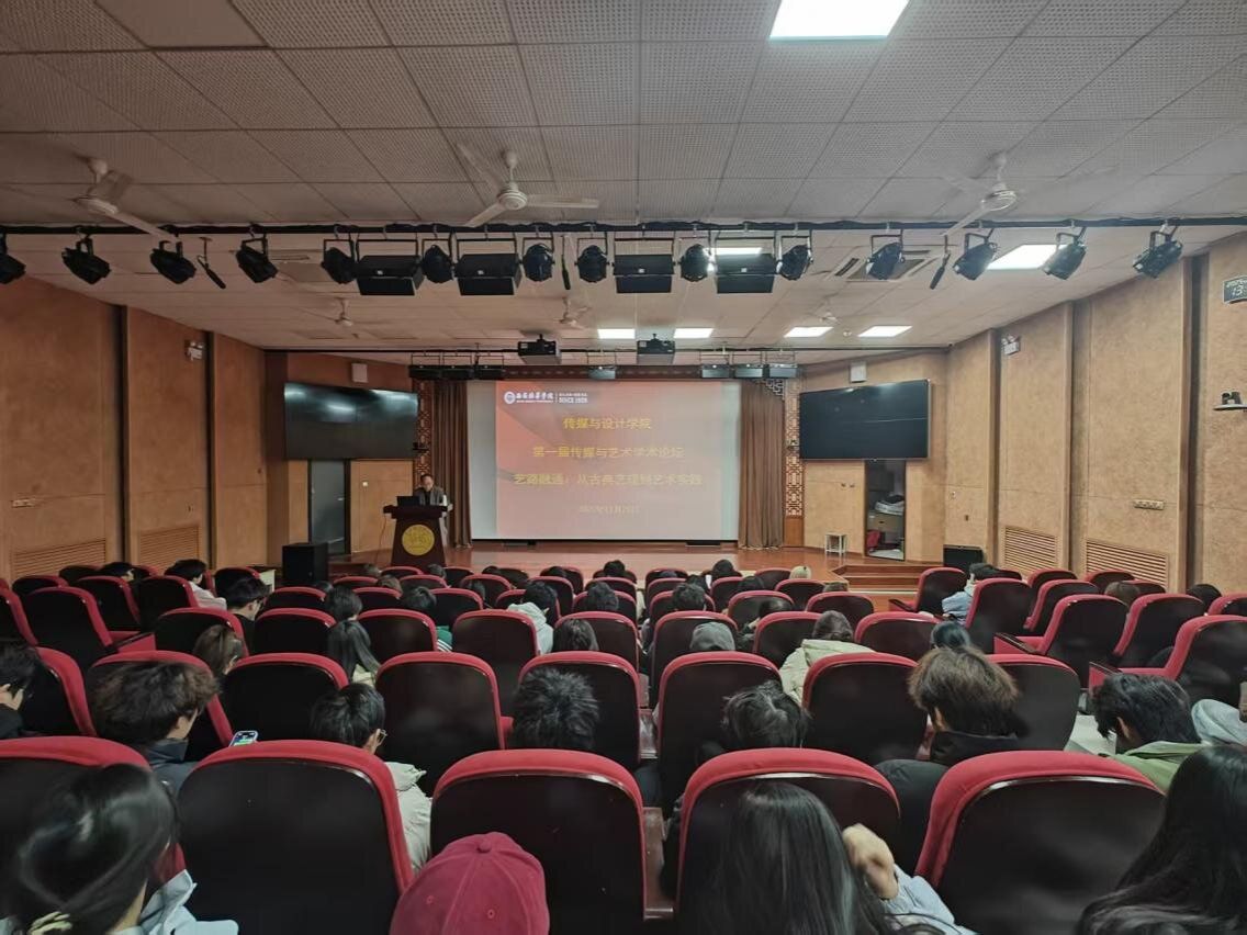 2025年11月26日下午,由西安培华学院传媒与设计学院主办的首届“传媒与艺术学术论坛——艺路融通:从古典艺理到艺术实践”在国学大讲堂成功举行。本次论坛汇聚了戏剧影视文学、艺术设计学等多学科领域的专家学者,旨在搭建一个跨越理论与实践的对话平台,共同探索古典艺术精髓在当代艺术创作与传媒实践中的传承与创新路径。论坛吸引了戏剧影视文学、视觉传达设计、广播电视编导等专业共计150余名师生参与,论坛由影视戏剧系系副主任聂婷老师主持。