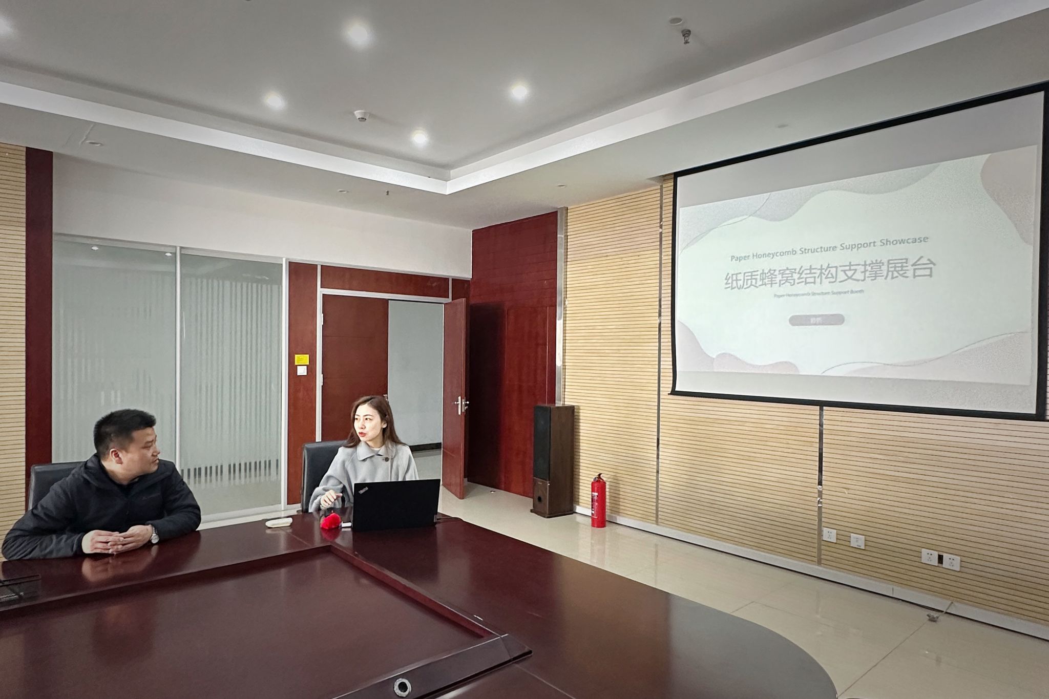 制印公司技术团队对项目给予了高度关注,对纸质蜂窝材料在未来文创展示、印刷品陈列等方向的可拓展性表达了浓厚兴趣,并与我院就后续合作、学生实习实践基地建设及联合研发方向进行了初步交流。