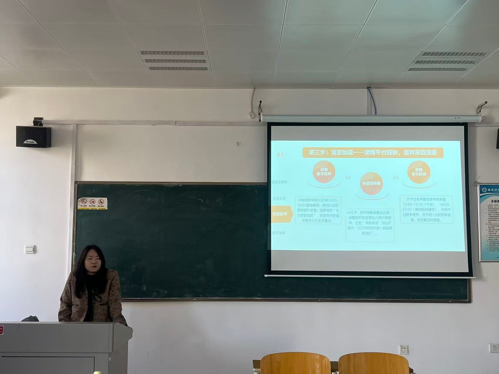 针对大学生群体,金老师重点提炼了四大天然优势,时间灵活且试错成本低,可从容打磨内容;圈层共鸣自带流量密码,校园场景下的考研、备考、好物分享等内容精准触达同龄受众;专业知识构成高壁垒护城河,播音主持的语言表达与镜头感优势可直接迁移至短视频与直播领域;社交资源提供初始流量池,班级群、社团活动等成为免费推广渠道。