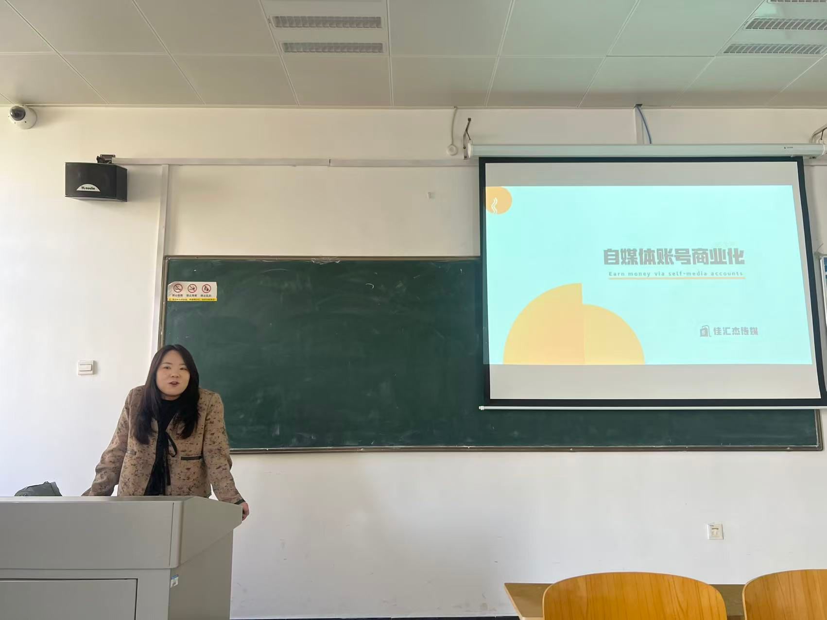 为帮助播音主持艺术专业学生把握融媒体时代机遇,拓宽职业发展边界,精准掌握自媒体商业化运营技巧,11月19日,学院特邀陕西佳汇杰传媒有限公司新媒体经理、行业资深导师金颖面向播音主持艺术专业学子开展“自媒体账号商业化”实战训练与指导。本次实战训练与指导聚焦自媒体变现核心痛点,以理论解析+实战案例+互动实操的形式,为学生搭建从专业能力到商业转化的实战桥梁,助力复合型传媒人才培养。