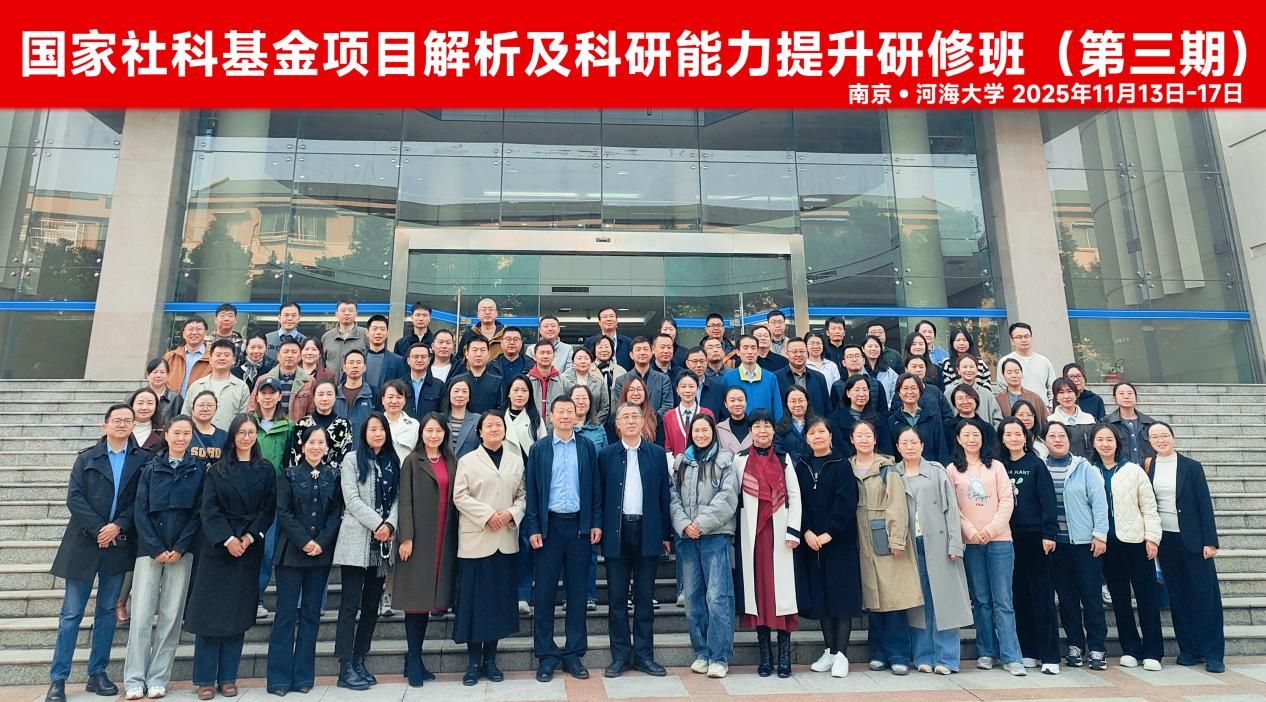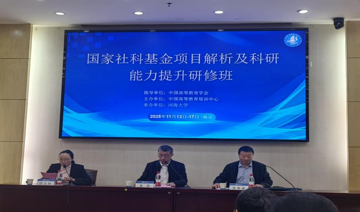 为切实提升我院教师的科研素养与项目申报能力,11月13日至17日,学院精心组织教师参加了国家社科基金项目解析及科研能力提升研修班。本次研修班采用了线上与线下相结合的方式,赵丽教授与陈连龙副教授赴河海大学参加线下研修,晋珊珊、时娟、李宁等多位老师则通过线上平台同步参与学习,共同开启了一场高规格、高密度的科研能力提升之旅。