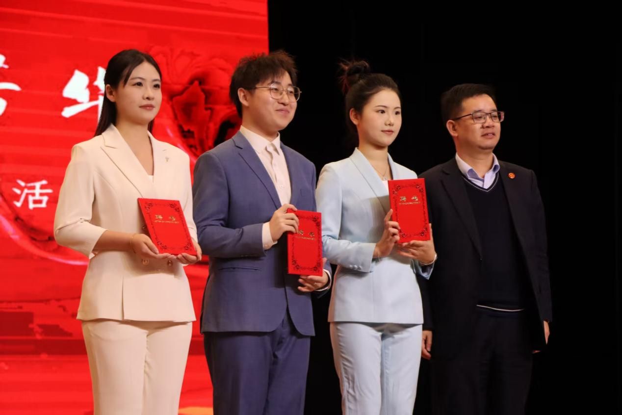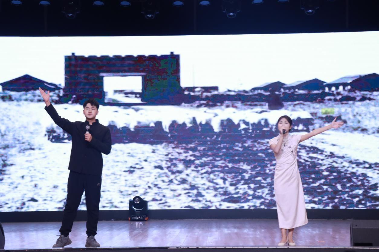 最后登场的双人朗诵《土地的誓言》,以低沉激昂的旋律为底色,两位朗诵者用饱含深情的声线,倾诉着对祖国大地最深沉的眷恋。他们的朗诵时而舒缓深情,时而铿锵有力,将对土地的热爱、对家国的赤诚展现得淋漓尽致,传递出新时代青年接续奋斗的使命担当,为表演环节画上了圆满句号,也让现场观众的爱国情怀被深深点燃。