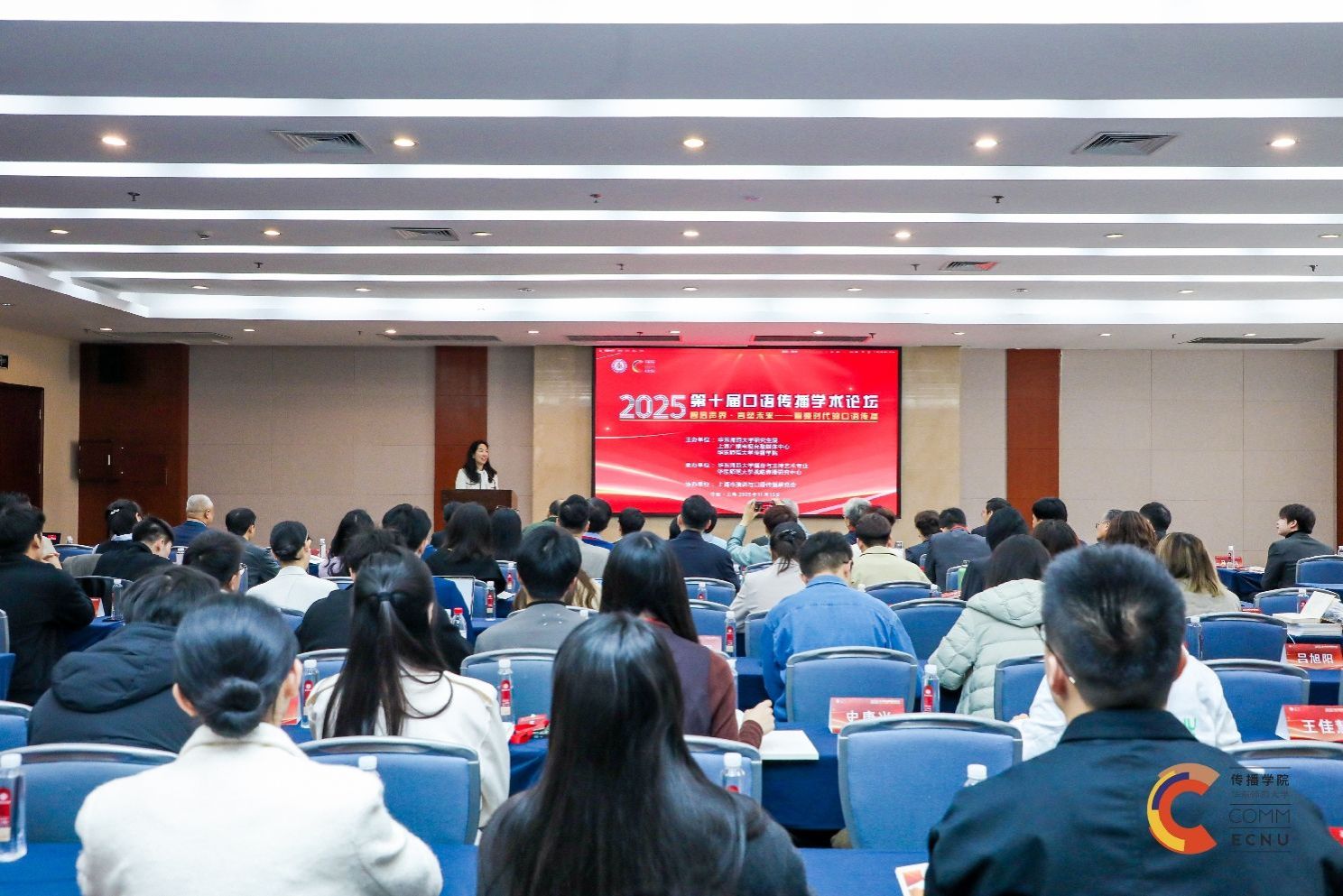 本届论坛由华东师范大学传播学院、上海广播电视台融媒体中心、上海市演讲与口语传播研究会联合主办,主题为“智启声界·言塑未来”,吸引了来自全国高校及媒体的百余位专家学者参与。论坛聚焦智能技术重塑口语传播生态的新趋势,探讨口语传播教育面临的挑战与机遇。