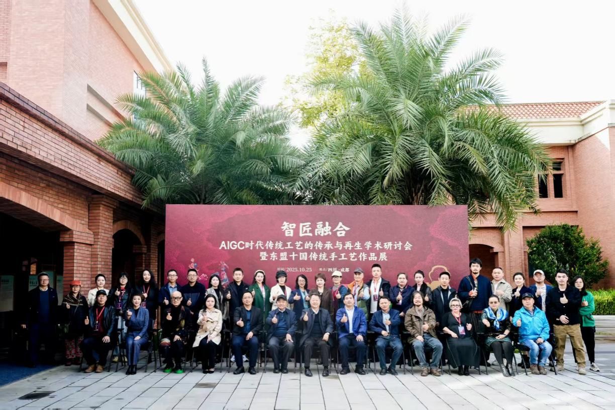 10月25日,“智匠融合:AIGC时代传统工艺的传承与再生学术研讨会暨东盟十国传统手工艺作品展” 在成都大学中国-东盟艺术学院隆重开幕。本次活动以“传承经典、创新未来”为主题,构建了“学术研讨+跨国展览+非遗展演”三位一体的文化交流平台,推动传统工艺在人工智能时代的活化传承与国际传播。