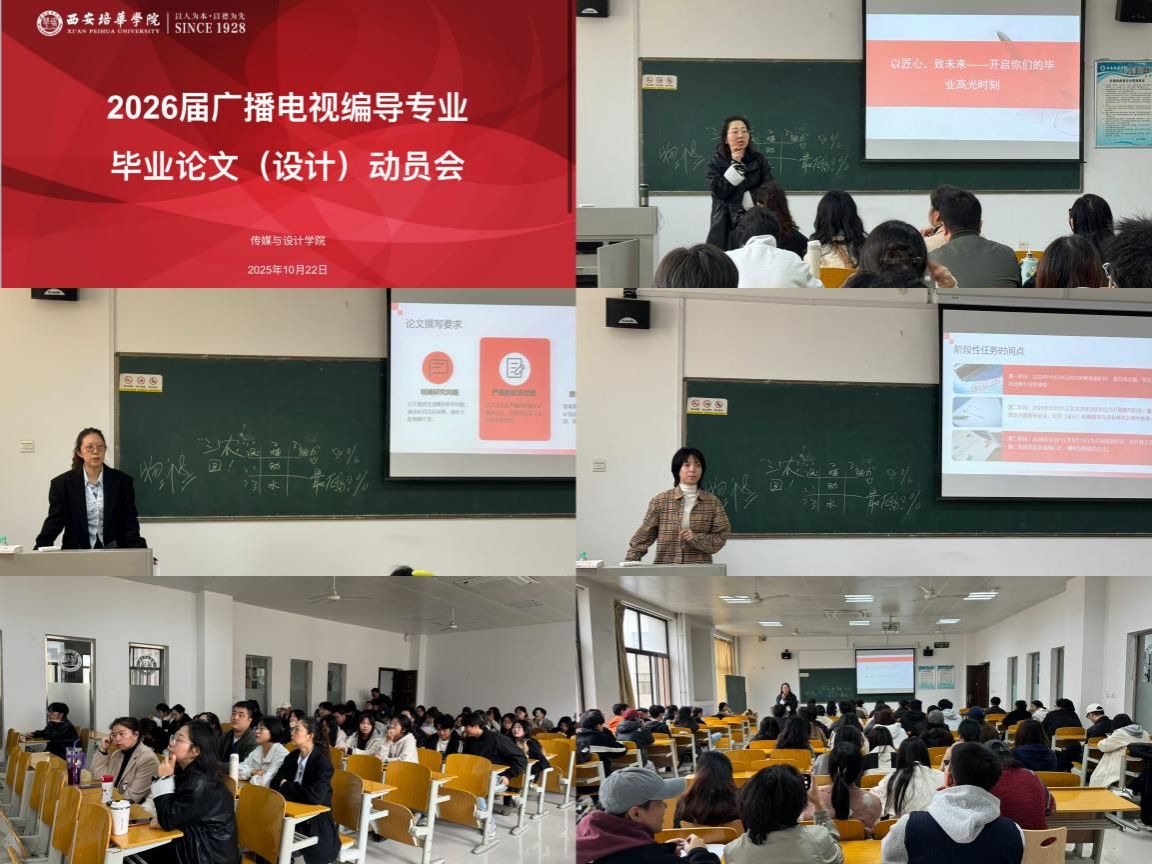 近日,传媒与设计学院2026届各专业陆续召开毕业论文(设计)动员会,全面启动本届毕业实践教学工作。各专业结合学科特点与人才培养目标,系统部署工作安排,明确质量标准,为毕业生顺利开展毕业论文(设计)奠定坚实基础。