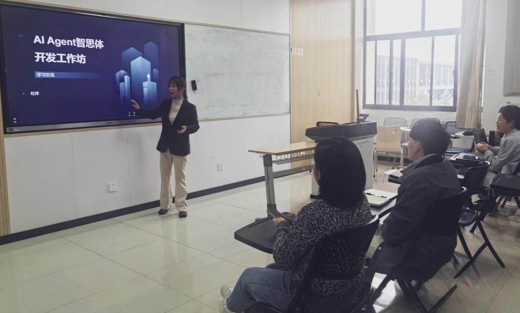 为积极推动 AI 技术与学科教学深度融合,助力教师把握教育数字化转型机遇,周三下午,传媒与设计学院新闻传播系举办了 AI 智能体教学应用专题分享会。本次分享会由参加西安欧亚学院 “AI Agent 智思体开发工作坊” 的杜萍老师主讲,新闻传播系教师参与了此次交流活动。