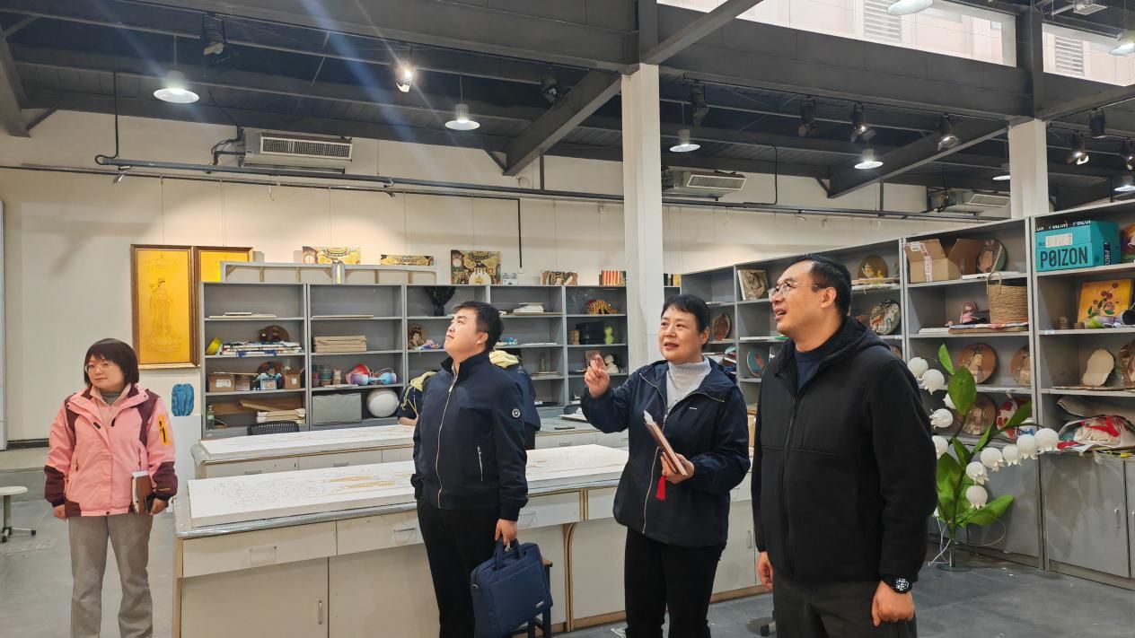 随后,邵院长与骨干教师陪同李宝林董事长一同参观了学院的VR教室、演播室、服装教室、工艺美术工作坊等学生实践课场所,李保林董事长对于传媒与设计学院在培养学生应用技术与实践能力方面投入的力量与效果表示认可,也更加期待与学院的深度合作。