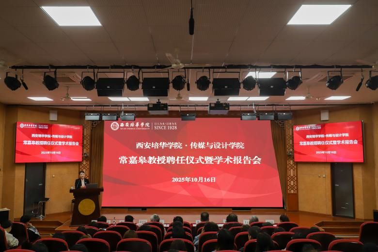 2025年10月16日15时,西安培华学院传媒与设计学院在汇知楼国学大讲堂隆重举行常嘉皋教授聘任仪式暨学术报告会。本次活动以“传承文化薪火,深化学术交流”为核心,既是学院引进专业人才、强化学科建设的重要举措,也为师生搭建了近距离感受中日文化交流历史的学习平台。本次学术报告会特邀常书鸿先生幼子常嘉皋先生、西安培华学院佛教艺术研究院院长马树茂先生领衔主讲,西安培华学院理事长姜波博士出席活动并致辞。同时,出席活动的还有传媒与设计学院常务副院长徐莹、副院长张荣花、副院长邵璐;襄阳甲客广告传媒有限公司总经理邢显国、昔诺陕西数字智能科技有限公司董事长范荐铭和师生代表100余人,讲座由传媒与设计学院副院长邵璐主持。
