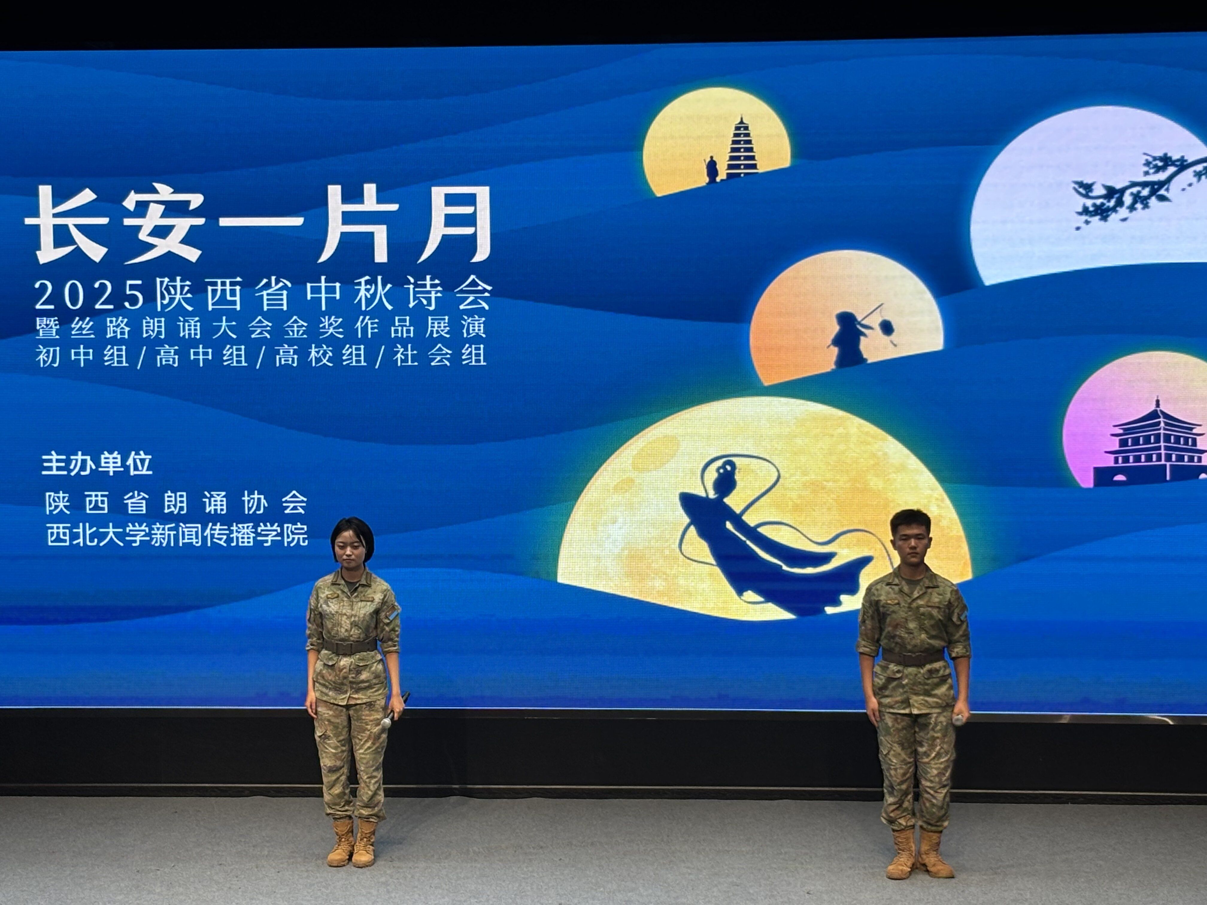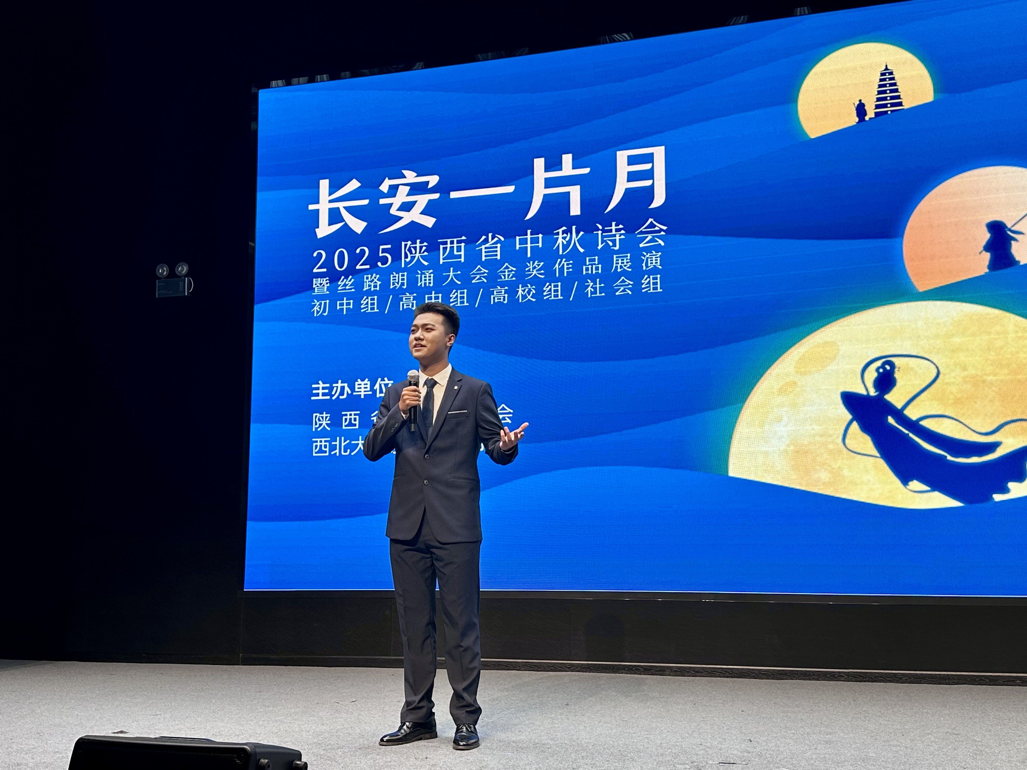 2025年9月24日,“长安一片月”2025陕西省中秋诗会暨丝路朗诵大会金奖作品展演在西北大学长安校区郭超人报告厅精彩上演。西安培华学院大学生朗诵艺术团携两部优秀作品登台,与西北大学、西安外国语大学、陕西师范大学等多所高校的优秀团队同台演出,以声传情、以诵表意,共绘中秋情思与丝路文化交融的动人画卷。