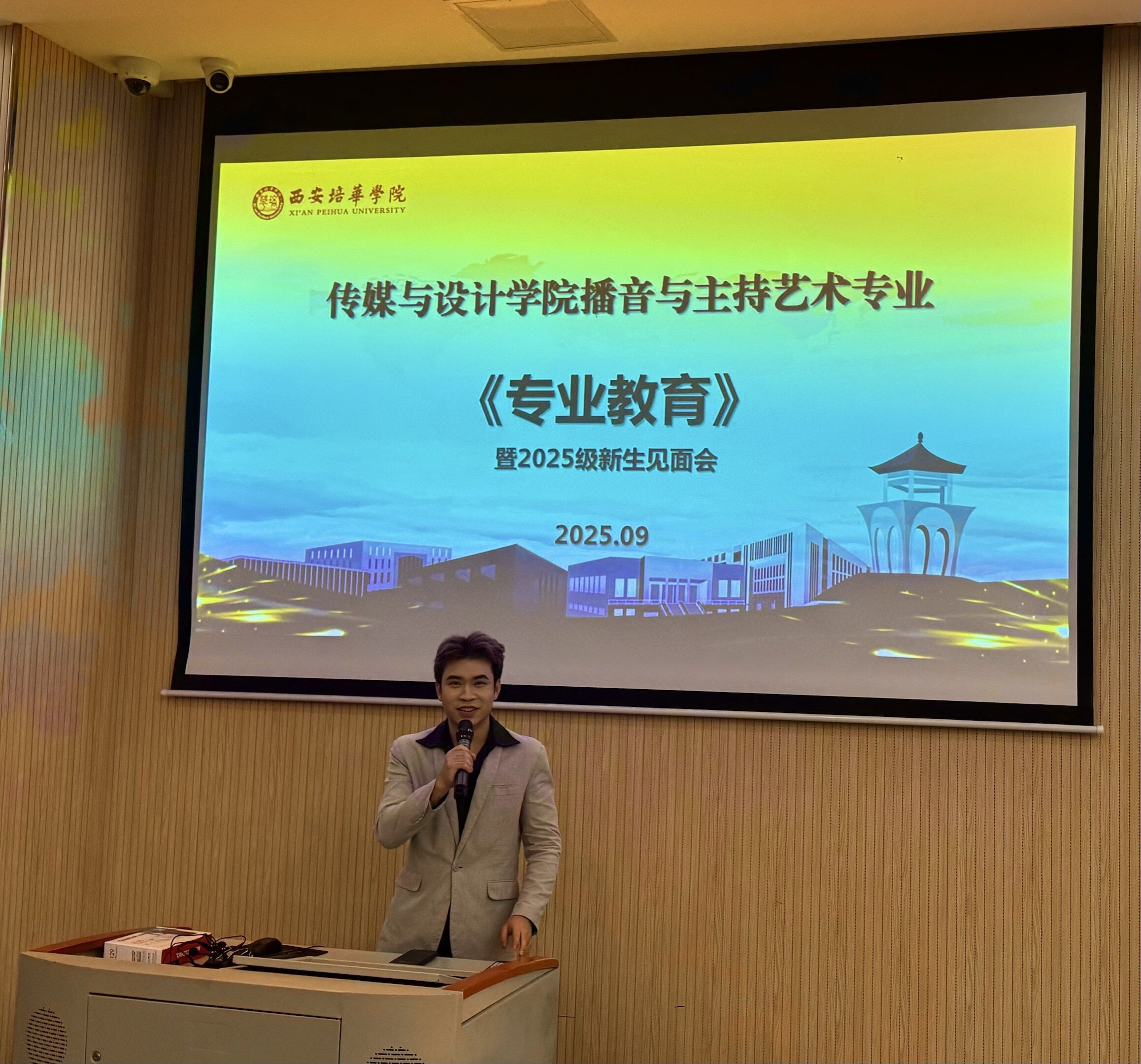 秋兰飘香,雏凤新声。9月18日传媒与设计学院播音与主持艺术专业《专业教育》暨2025级新生见面会在学院学术报告厅隆重举行。本次见面会旨在帮助新生深入了解专业内涵、熟悉师资力量、明确学习方向,并快速融入播音与主持艺术的大家庭。专业全体教师、各优秀学生社团代表及2025级全体新生共同参加了此次盛会。