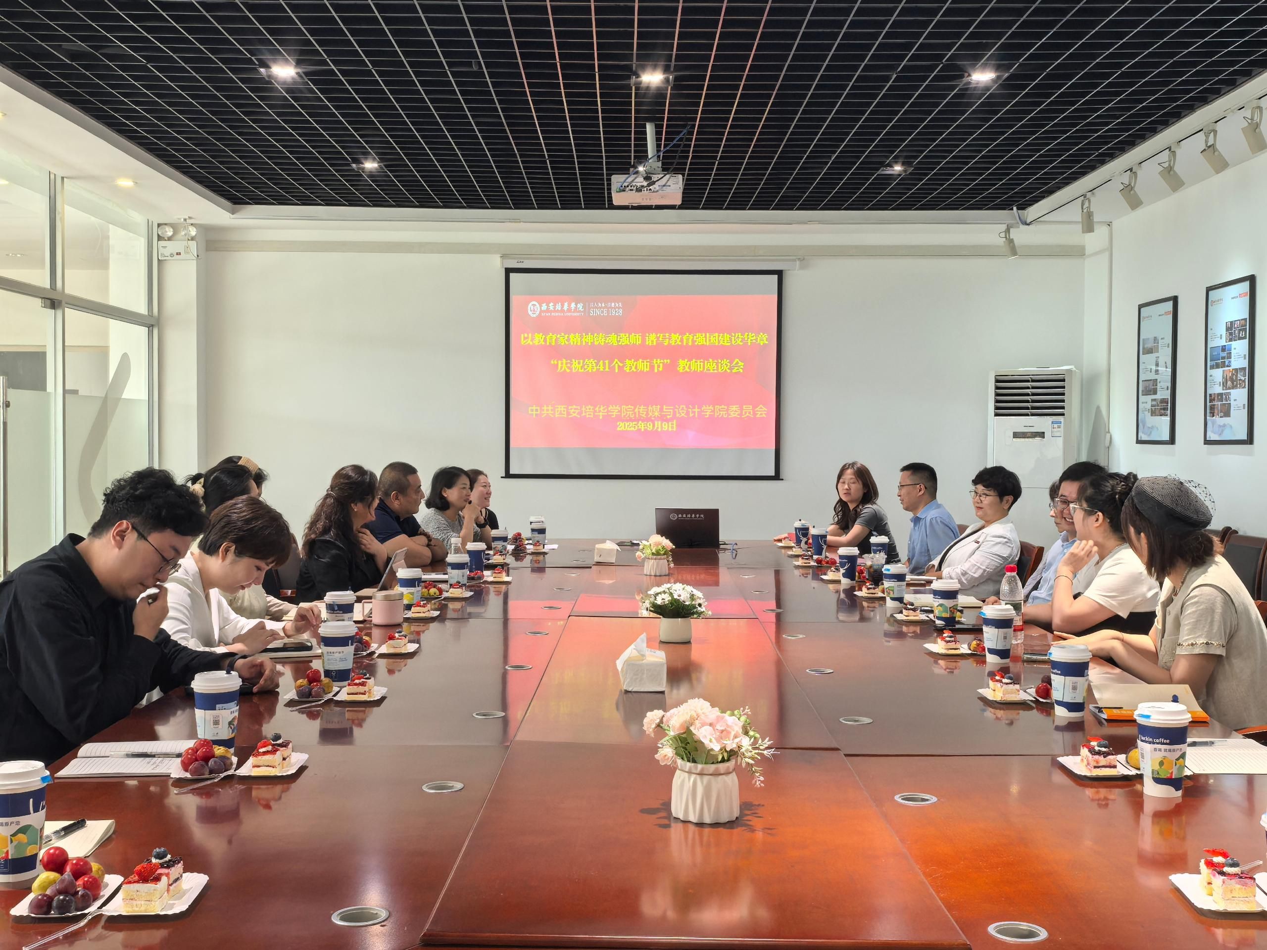 2025年9月9日上午十点,传媒与设计学院于汇知楼第四会议室召开了“庆祝第41个教师节”教师座谈会。参加座谈会的有传媒与设计学院常务副院长徐莹、院党委书记王飞、副院长张荣花,各民主党派及党外知识分子代表、海外留学归国人员代表、新进青年博士代表、自培博士代表、其他专业教师代表共30余人。座谈会由党委书记王飞主持。