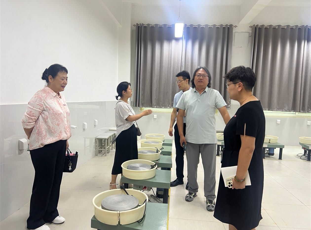 交流结束后,徐院长一行在西京学院同仁陪同下,实地参观了设计艺术学院IP创智实验室、陶艺教室、漆画教室等实训场地。其中实验室管理、功能化分区等方面为学院优化实验室建设与实践教学体系提供了一些可行性参考。