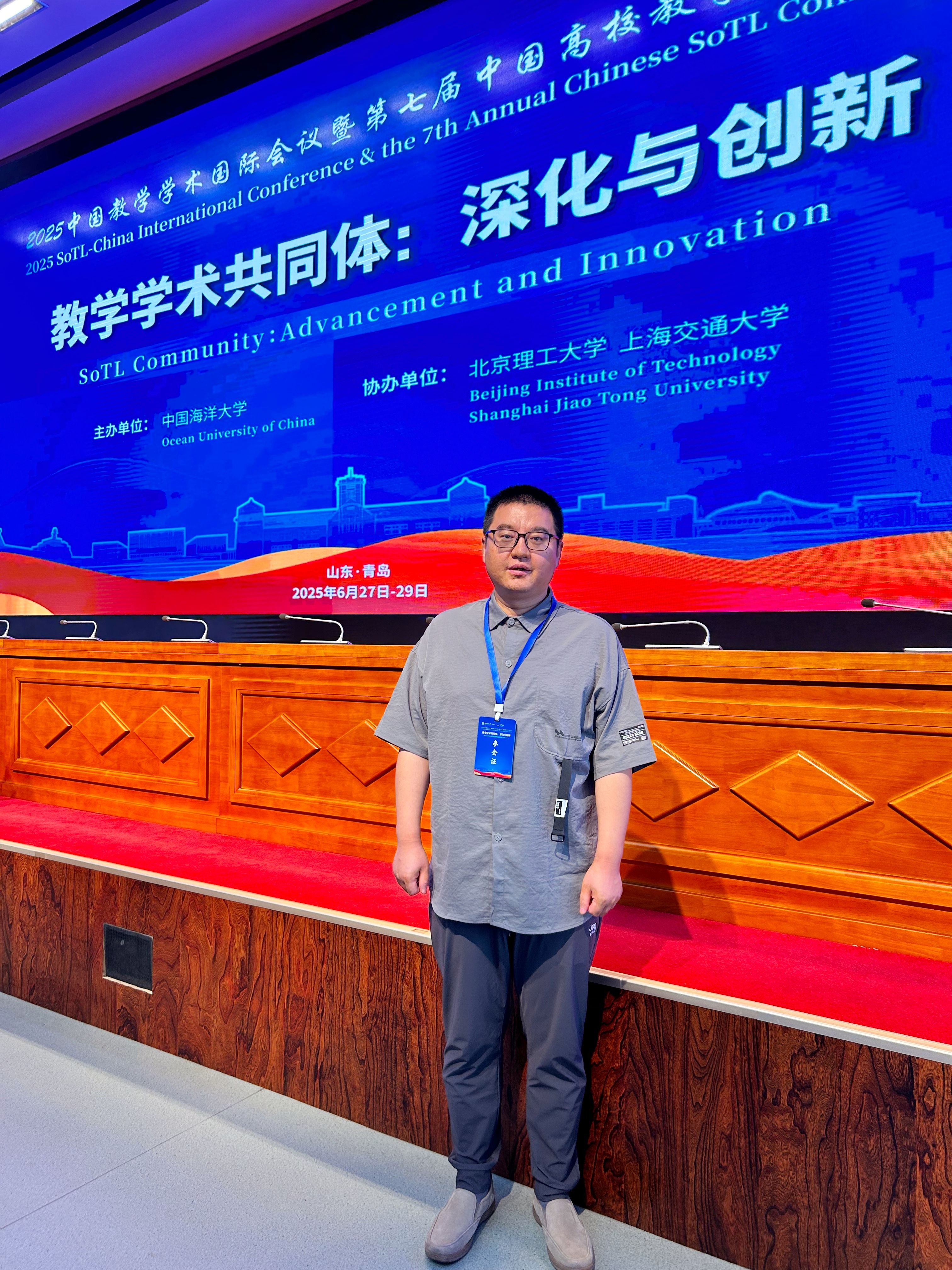 2025年6月27日至29日,由中国海洋大学主办、北京理工大学及上海交通大学协办的“2025中国教学学术国际会议暨第七届中国高校教学学术年会”在青岛成功举办。本次会议主题为“教学学术共同体:深化与创新”(SoTL Community: Advancement and Innovation),汇聚了来自美国、澳大利亚、加拿大、日本、新加坡、中国香港等国家和地区的113所高校和科研机构,共计380余位参会者,围绕教学学术共同体建设、数智化教育转型、全球教育合作等议题展开深度研讨。我院陈连龙副教授前往青岛参会,并积极参与学术交流。