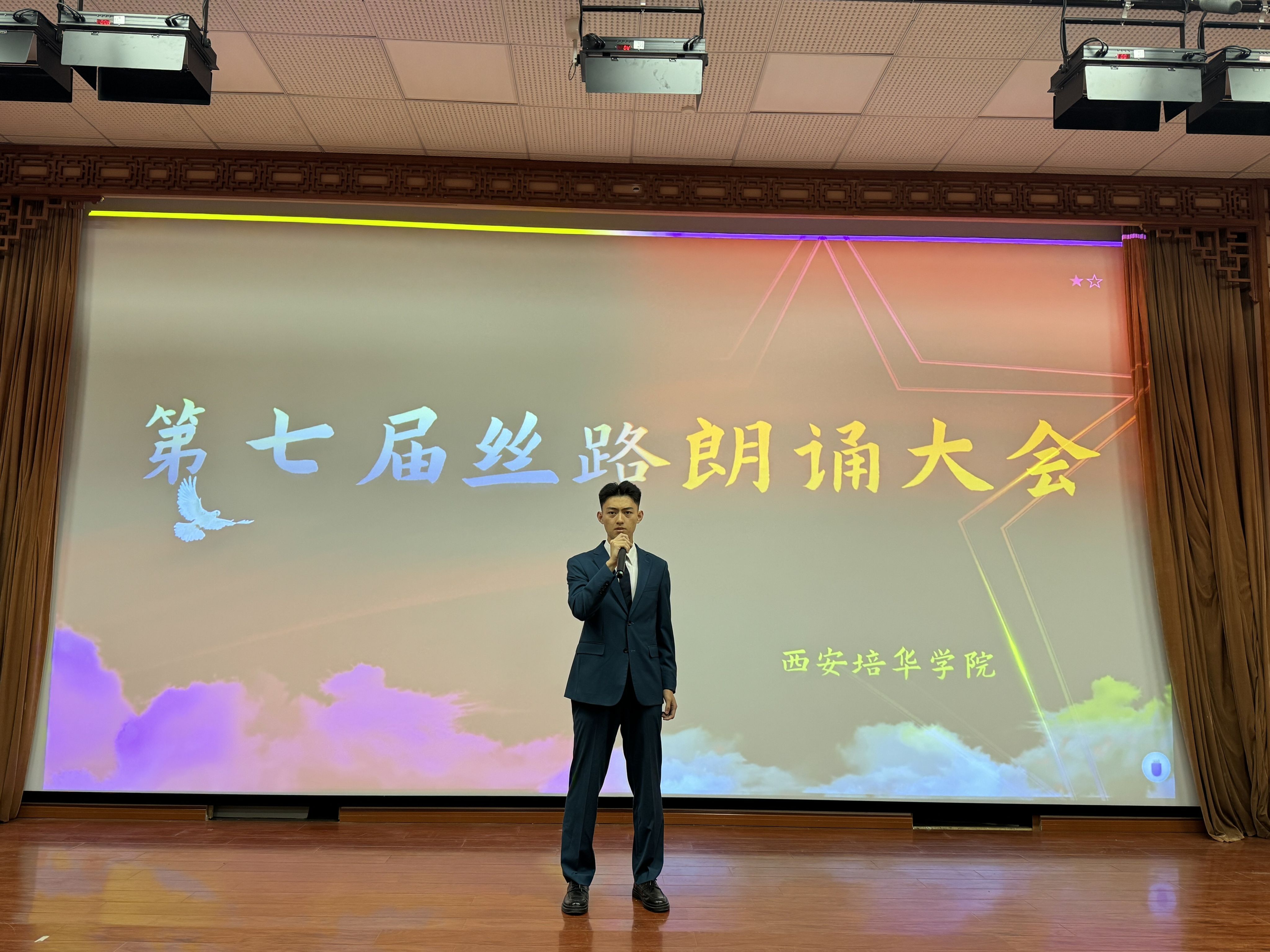 丝路传音诵经典,培华学子展新声。西安培华学院依托其深厚的文化底蕴及其传媒学科优势,为鼓励我校学子们勇于在舞台上展现艺术风采,2025年5月8日,于西安培华学院汇知楼—6111隆重举办第七届丝路朗诵大会西安培华学院赛区比赛,并顺利举行,取得圆满成功。担任本次比赛的评委老师有:西安培华学院播音与主持艺术系主任尚勇老师、播音与主持艺术专业教师买丽颖老师、黑梦奇老师、张雨声老师、刘玥老师。本次比赛由西安培华学院播音与主持艺术专业主办,分为朗诵赛道和配音赛道,鼓励全校学生积极参与,最终在赛场上见证了传媒与设计学院选手、马克思主义学院选手、人文与国际教育学院选手和智能科学与工程学院选手的卓越风采。本次比赛由播音与主持艺术专业学生隋佳煦、孙兴宇主持。