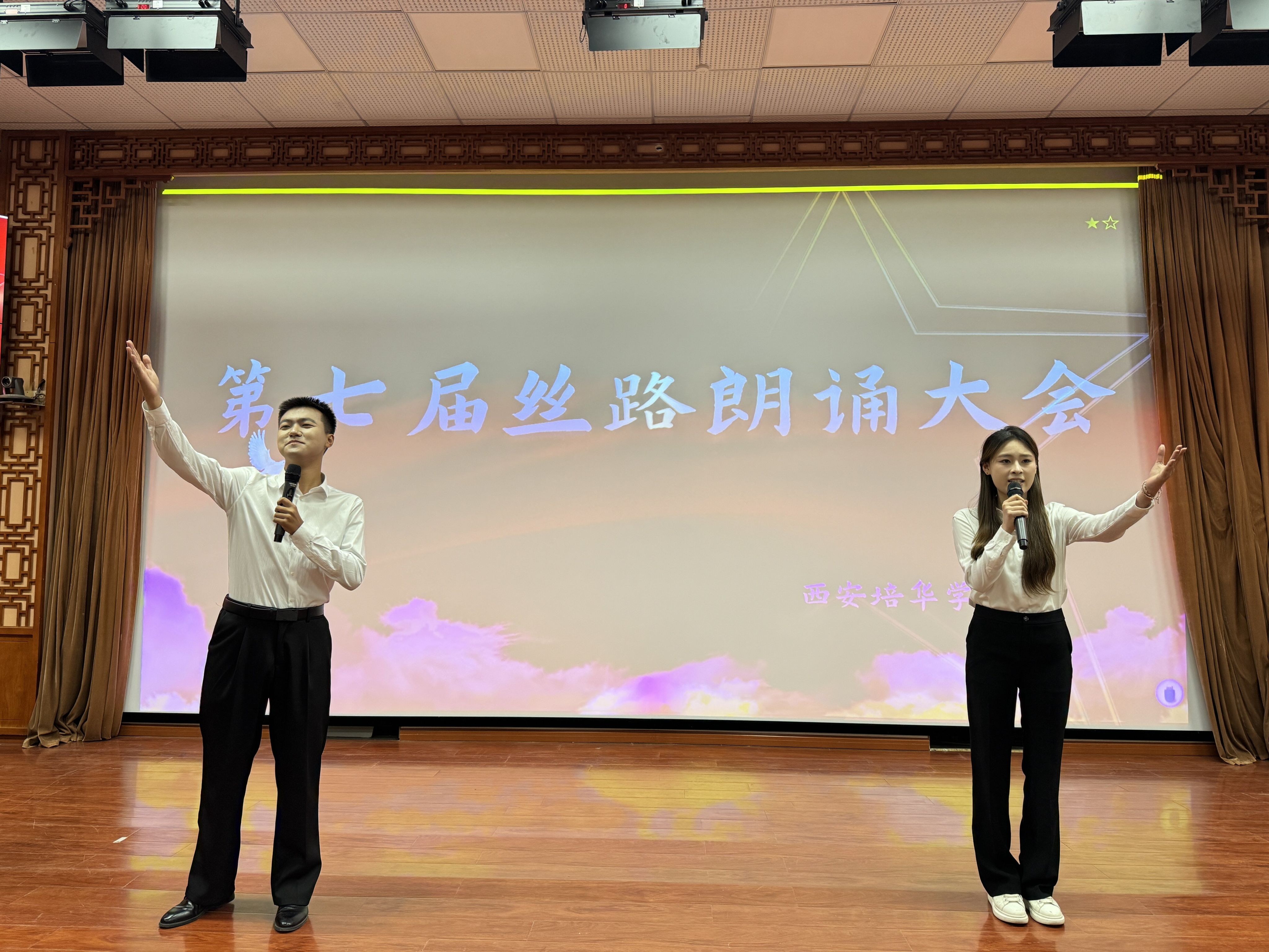 西安培华学院以赛事为契机,深化学科建设,鼓励学生以赛代练,助力学子们在语言艺术领域精进专业技能、拓展专业视野。播音与主持艺术专业更是以实践育人为本,将赛事成果反哺教学,希望能培育出兼具专业能力与文化底蕴的复合型传媒人才。祝贺第七届丝路朗诵大会西安培华学院赛区比赛取得圆满成功,感谢每一位参赛选手、评委老师、工作人员,希望晋级的选手们继续“走花路”,发挥出最佳的状态与水平,展现西安培华学院学子们的风采与实力。