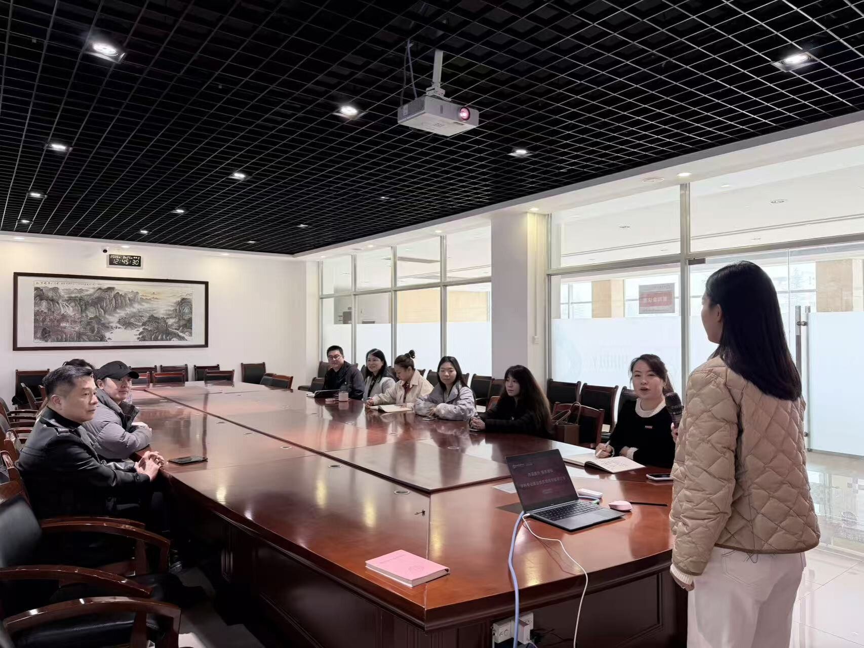 为深入贯彻高等教育内涵式发展要求,精准对接传媒行业人才培养新需求,2026年3月25日13时,播音与主持艺术专业语言表达教研室在汇知楼第四会议室成功举办新学期第一次教研活动。本次活动以“内涵提升,提质增效——学科专业建设提质增效” 为主题,采用专题学习形式深入研讨,由刘玥老师与张笑影老师共同主持,教研室全体教师参会,现场研讨氛围浓厚。